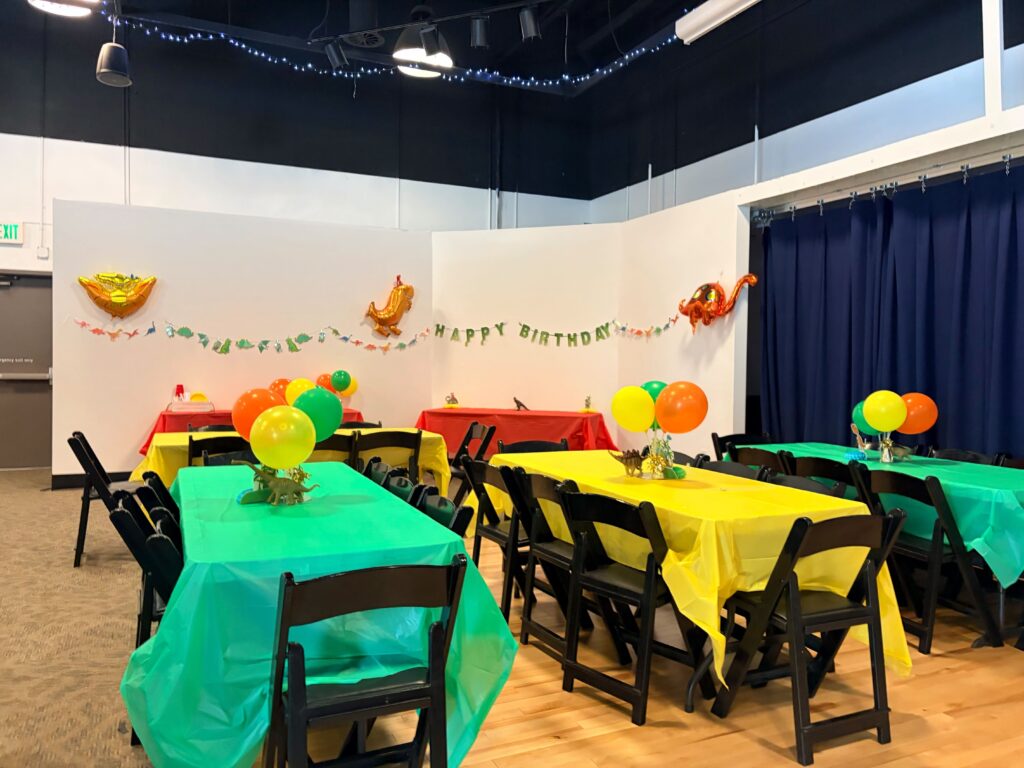 Our Theater Party option is perfect for celebrations that need a little extra room to spread out. Ideal for parties with over 35 guests or families looking for a more open, flexible space, the theater offers comfortable seating and plenty of room for presents, cake, and group activities. You’ll still enjoy all the excitement of a Discovery Gateway birthday, just with added space to keep everyone comfortable and engaged—especially great for larger guest lists or high-energy groups. Any theme can be set up in the theater!